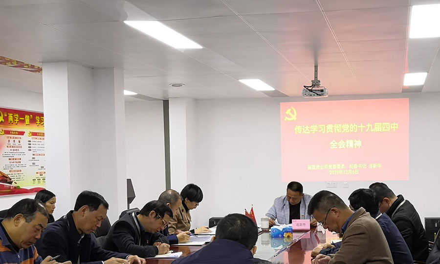 2019年12月6日上午,省国资公司党委委员、纪委书记连新华同志到KY官网公司宣讲党的十九届四中全会精神,并开展从严治党主体责任落实情况检查、党建工作年度考评、“达标创星”工作考评和“不忘初心、牢记使命”主题教育“回头看”检查,省国资公司党委观察员、党群工作部主任、办公室副主任谢闻婕,纪检监察室主任、审计室主任陈永宾同志随同。KY官网公司党政领导班子全体成员和全体在职党员、中层以上干部、入党积极分子等参加了宣讲会。
