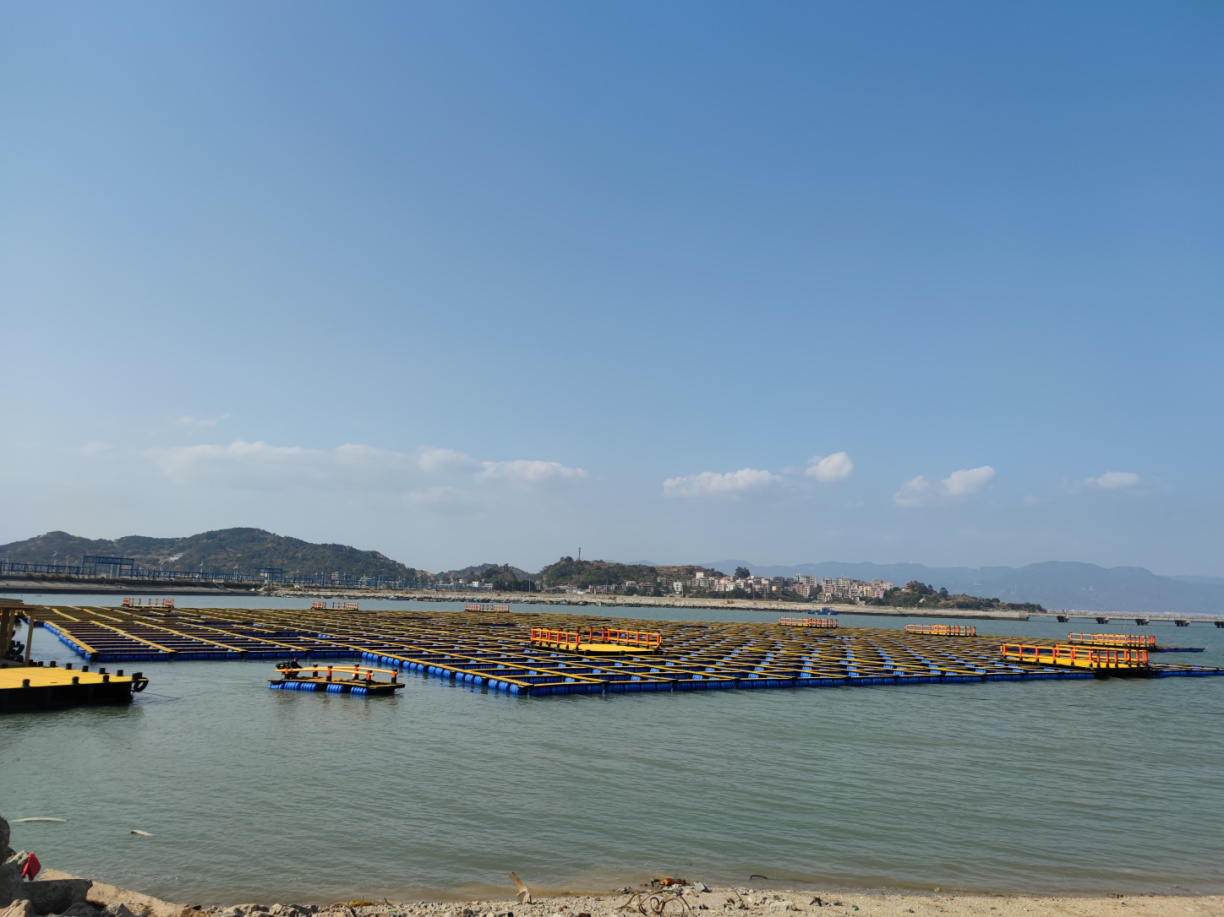 陈龙津书记一行实地察看了新型塑胶渔排建设情况,了解了渔排组件产地、原材料来源及生产环节、渔排组装过程中的安全情况,听取了刘华虎总经理关于产品使用效益、项目建设进度、现场安全管理等方面情况的介绍。