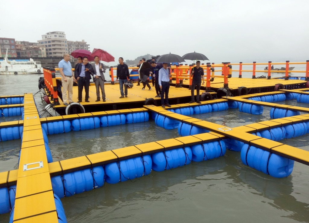 本项目总投资5361.76万元,采用HDPE材料建设新型养殖网箱设施及休闲平台,共建设46个单元,8096口网箱、92个平台、92个管理房及污水处理设施。当前,项目建设单位已完成安装第一批新型塑胶网箱10个单元(其每个单元为176口,2个平台和2个管理房组成),共计1760口(每口内框尺寸规格3.6mx3.6m)、踏板宽度40cm、厚度75mm,平台20个、管理房20个,并配套建设网箱设施设备等。