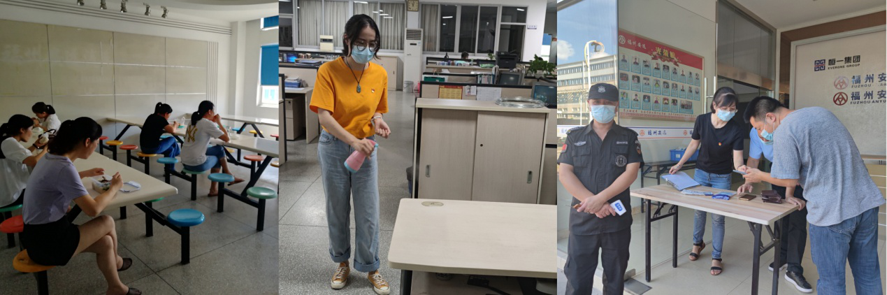 加大管控,落实防疫措施。一是为防范外来疫情,疫情防控工作小组成员、党员们按照既定部署对办公区、生产车间、仓库等场所进行消杀;二是每日上班前为全体职工测量体温、分发口罩,同时做好台账,及时跟踪记录大家身体状况;三是落实食堂“单人单桌”分散用餐,减少人群集聚和近距离接触。