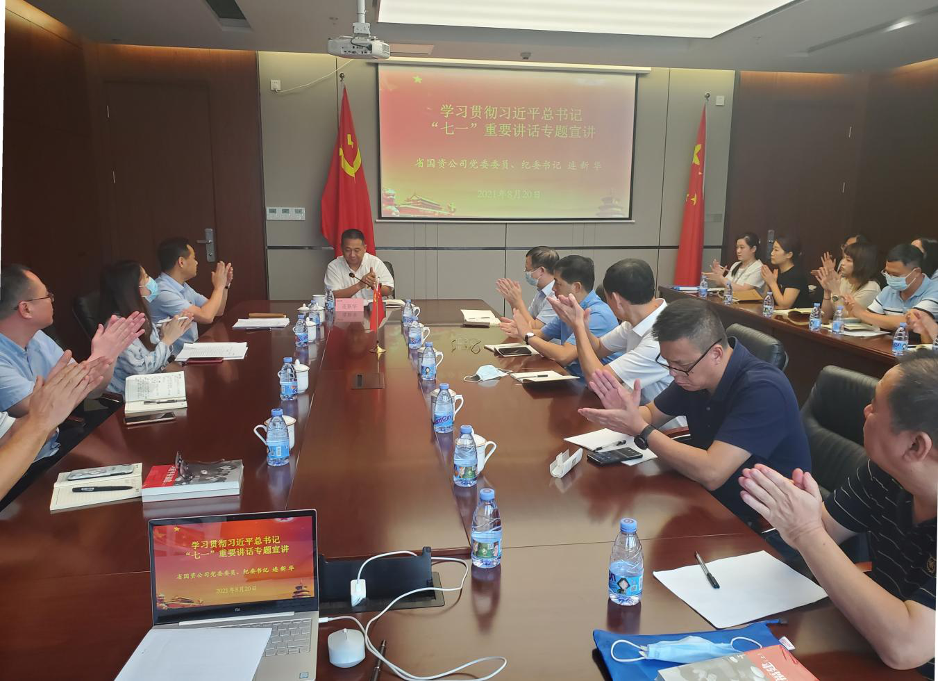 近日,省国资公司党委委员、纪委书记连新华同志到KY官网公司宣讲习贯彻习近平总书记“七一”重要讲话精神,KY官网公司党委班子成员、中层以上干部、本部全体党员参加了宣讲会。