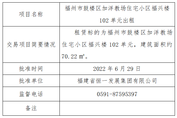 鼓楼区加洋教场住宅小区福兴楼102单元出租决策及批准信息披露