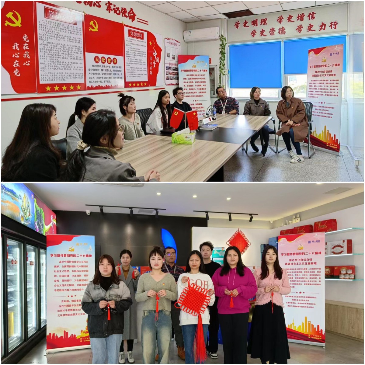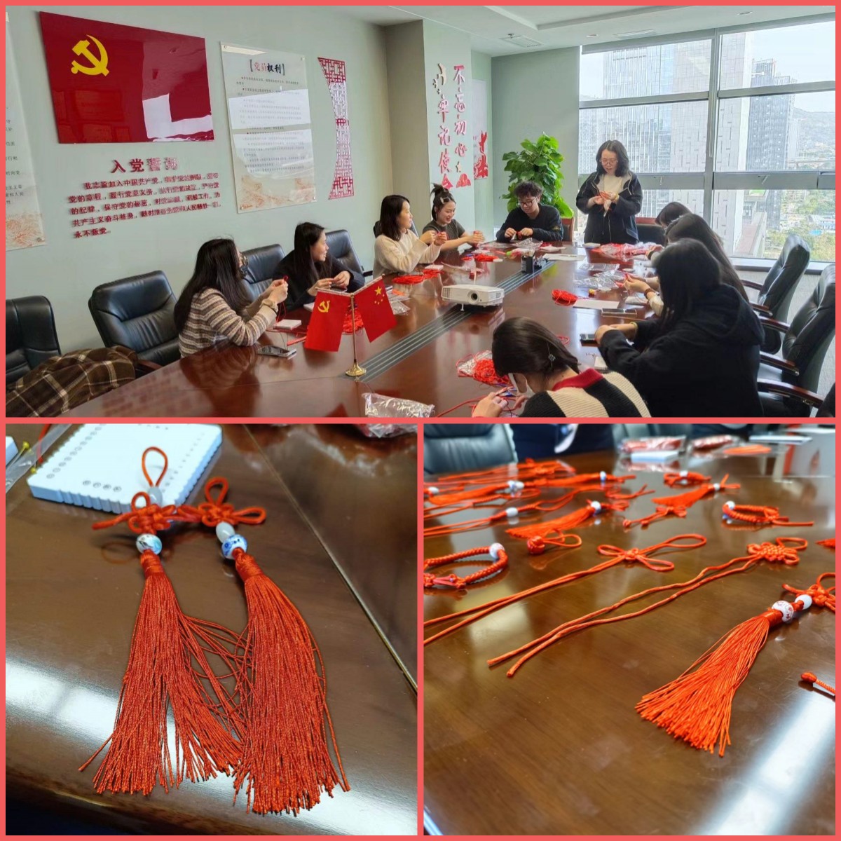 宣讲中,结合中国传统文化,还进行了中国结制作体验活动。参加活动的员工在老师的指导下,拿着手里的小红线上下穿梭,绕绳、打结、打穗,编织成中国结。中国结代表着中华民族的传统文化,象征着人们的美好祝福和心愿。活动让公司青年体验了中国优秀传统文化的独特魅力,加深了对中国优秀传统文化的认识。