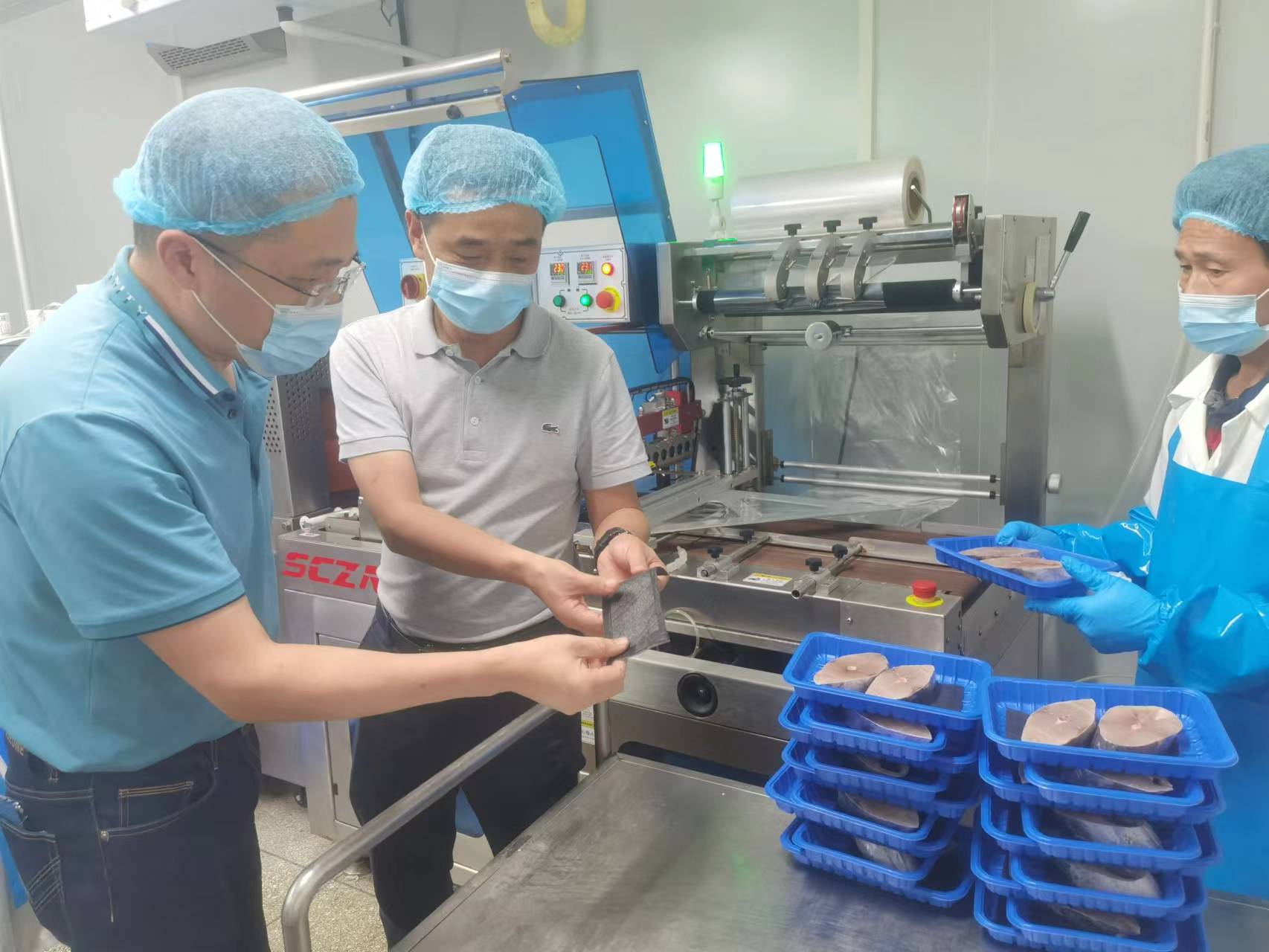 香港是海丝渔业公司冰鲜产品的主要出口地区之一,也是集团未来深耕预制菜产业的重要市场。调研组直达深圳出关一线,坚持问题导向,实地走访深圳冰鲜冷链出口车间、仓库,认真与员工深入沟通交流,直面工作重难点,现场帮助解决实际问题,通过考察调研,客观分析海丝渔业公司冰鲜产品面临出口形势,研判预制菜出口业务前景,为集团谋划发展和加快产业转型升级提供更多工作方法路径。