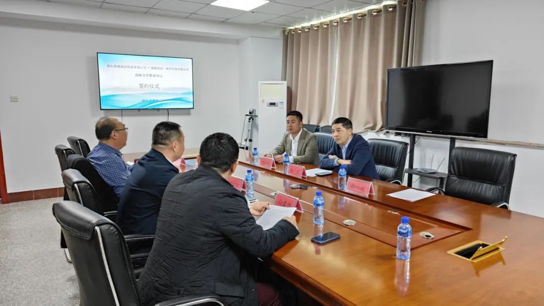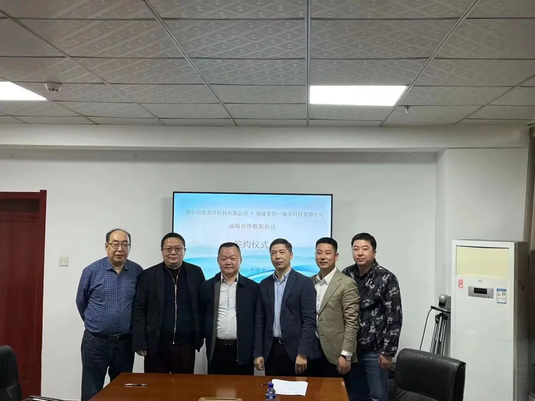 在烟台,调研组一行来到牟平区海洋发展与渔业局,与杨德时副局长等深入交流。双方聚焦绿鳍马面鲀产业发展,充分探讨了KY官网海科公司在牟平的产业规划和发展愿景,指出双方优势互补,有利于将“小鱼”做成“大产业”。随后,KY官网海科公司与烟台银礁海洋科技有限公司签订战略合作协议。双方将重点围绕绿鳍马面鲀深海养殖等方面展开合作,探索共建跨越南北的绿鳍马面鲀产业互动生态圈,协力促进产业高质量发展。