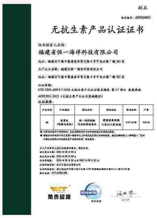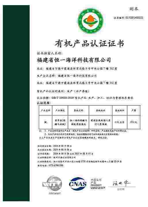 近日,KY官网集团权属企业KY官网海科公司翡翠鱼(绿鳍马面鲀)通过有机产品及无抗生素产品认证。