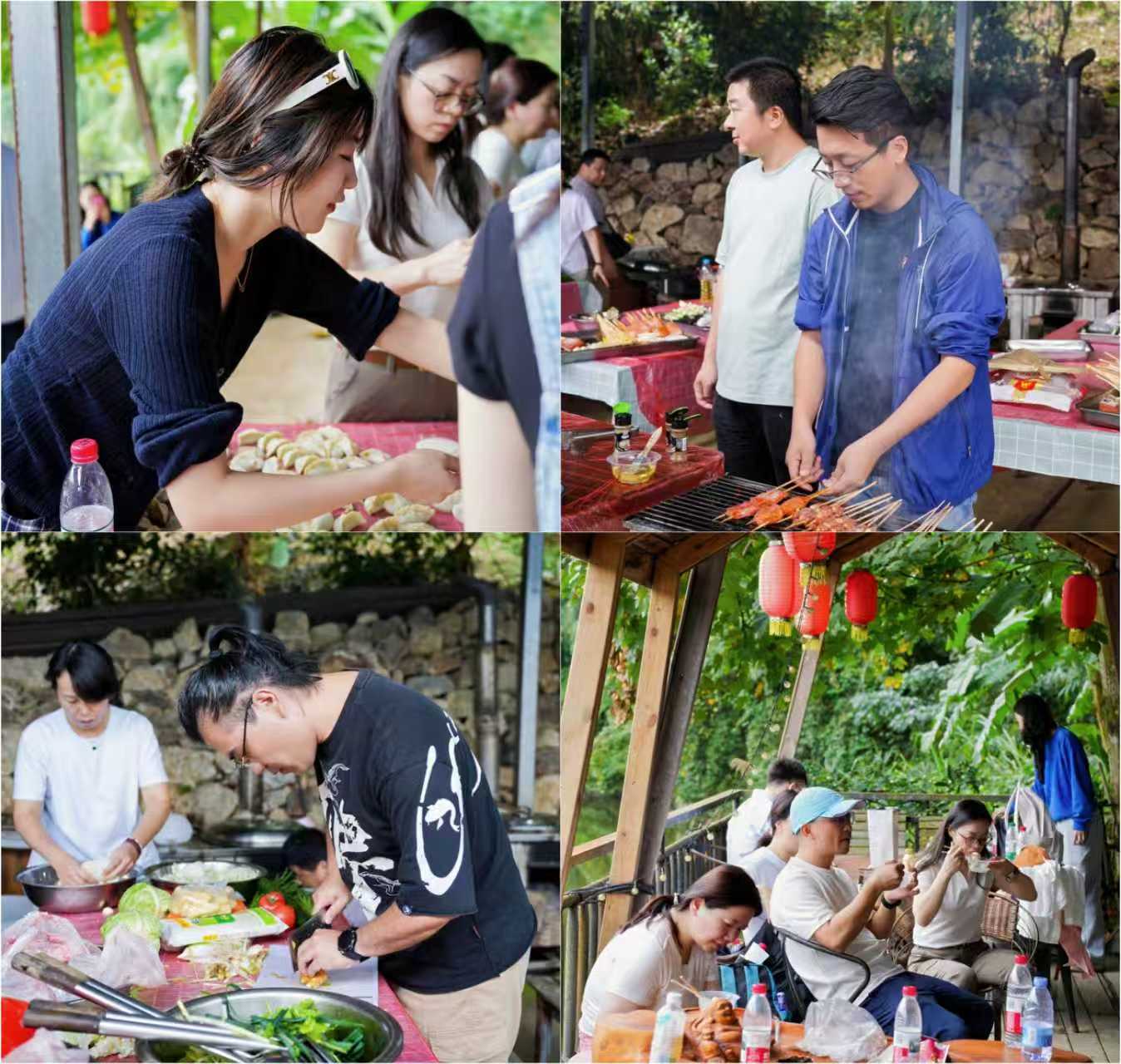 临近中午,大家根据提前准备好的新鲜食材,分工协作、各展所长,将食材烹制成一道道色香味俱全的菜肴。大家围坐在一起,一边品尝着美食,一边畅聊工作和生活中的趣事。待中午短暂休整后,大家分别体验了划竹排、K歌等项目。